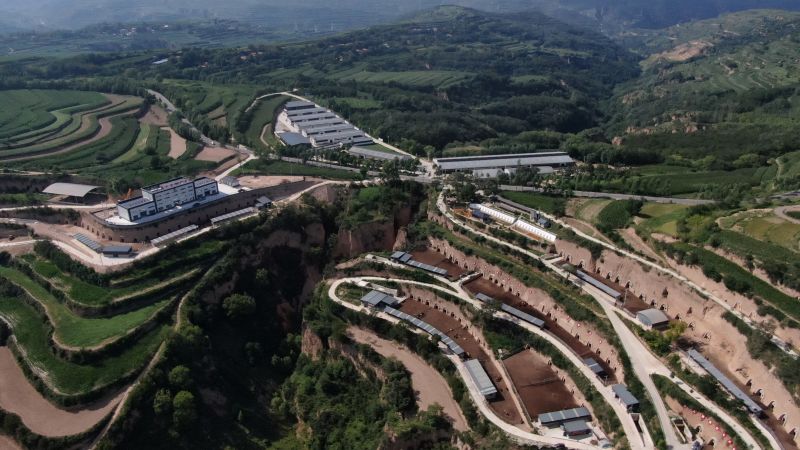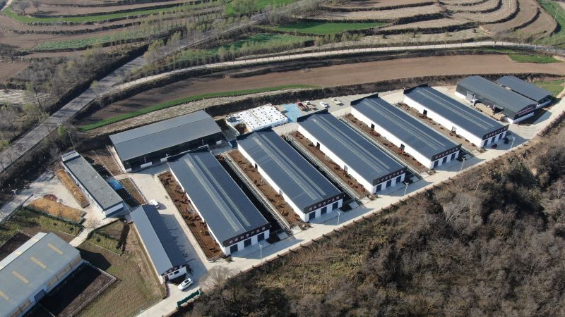 圖為崆峒區(qū)大寨鄉(xiāng)畜牧產(chǎn)業(yè)園鳥瞰圖