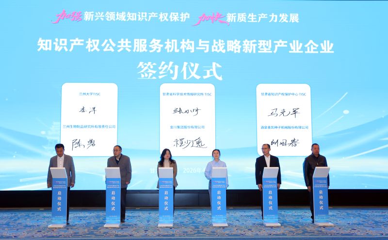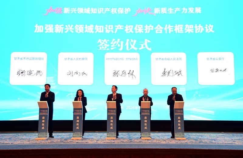 啟動儀式上,多項合作協議集中簽署,中共甘肅省委宣傳部(甘肅省版權局)、甘肅省高級人民法院、甘肅省人民檢察院、甘肅省公安廳、甘肅省市場監督管理局共同簽署《加強新興領域知識產權協同保護合作框架協議》;甘肅省市場監督管理局、中國銀行甘肅省分行、招商銀行蘭州分行,人保財險甘肅分公司、太平財險甘肅分公司、甘肅農商銀行、甘肅銀行、蘭州銀行共同簽署《推進知識產權金融、賦能新質生產力發展合作備忘錄》;甘肅省知識產權保護中心等單位分別與企業、高校簽署《知識產權服務協議》。